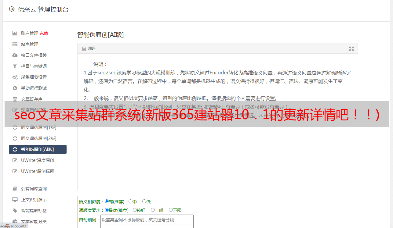 seo文章采集站群系统(新版365建站器10.1的更新详情吧!!)