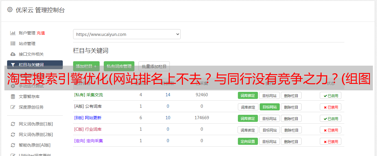 优采云 发布时间: 2021-11-16 11:10淘宝搜索引擎优化(网站排名上不去?与同行没有竞争之力?(组图))
