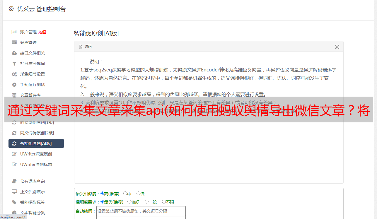 通过关键词采集文章采集api(如何使用蚂蚁舆情导出微信文章?将介绍如何导出文章 )