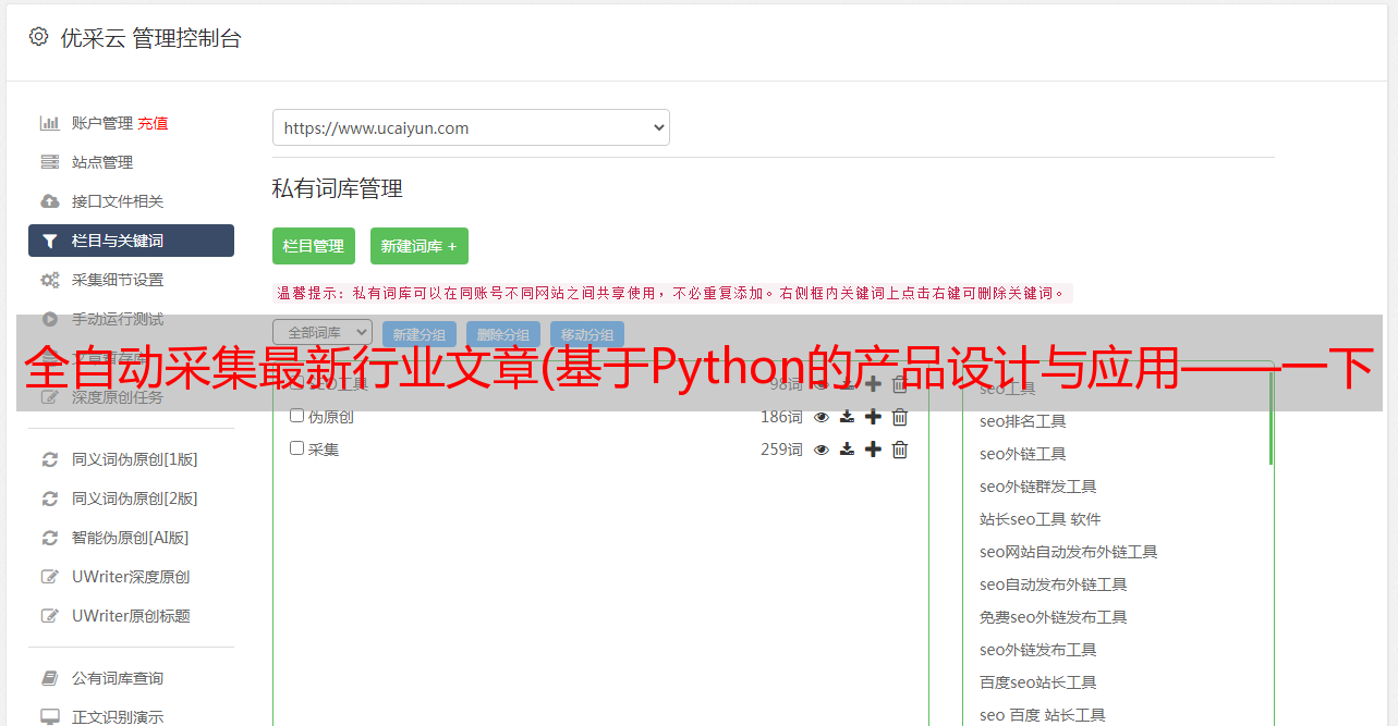 全自动采集最新行业文章(基于Python的产品设计与应用——一下系统脚本 )