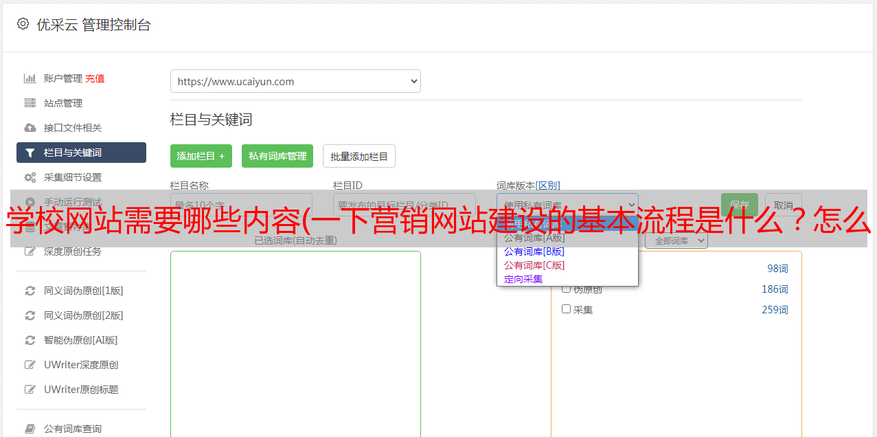 优采云 发布时间: 2021-11-16 14:27学校网站需要哪些内容(一下营销网站建设的基本流程是什么?怎么做?