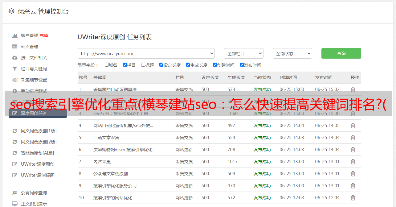 优采云 发布时间: 2021-11-16 21:17seo搜索引擎优化重点(横琴建站seo:怎么快速提高关键词排名?(图))