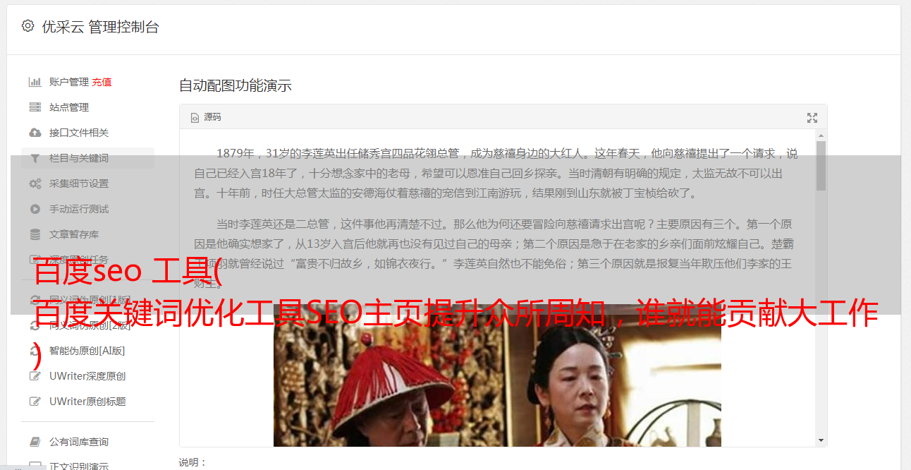 优采云 发布时间: 2021-11-16 23:21百度seo 工具(