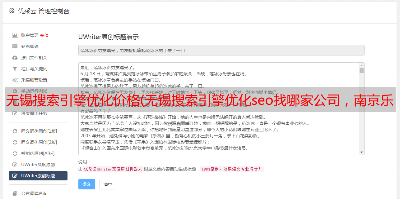 优采云 发布时间: 2021-11-16 23:21无锡搜索引擎优化价格(无锡搜索引擎优化seo找哪家公司,南京乐识信息,信息