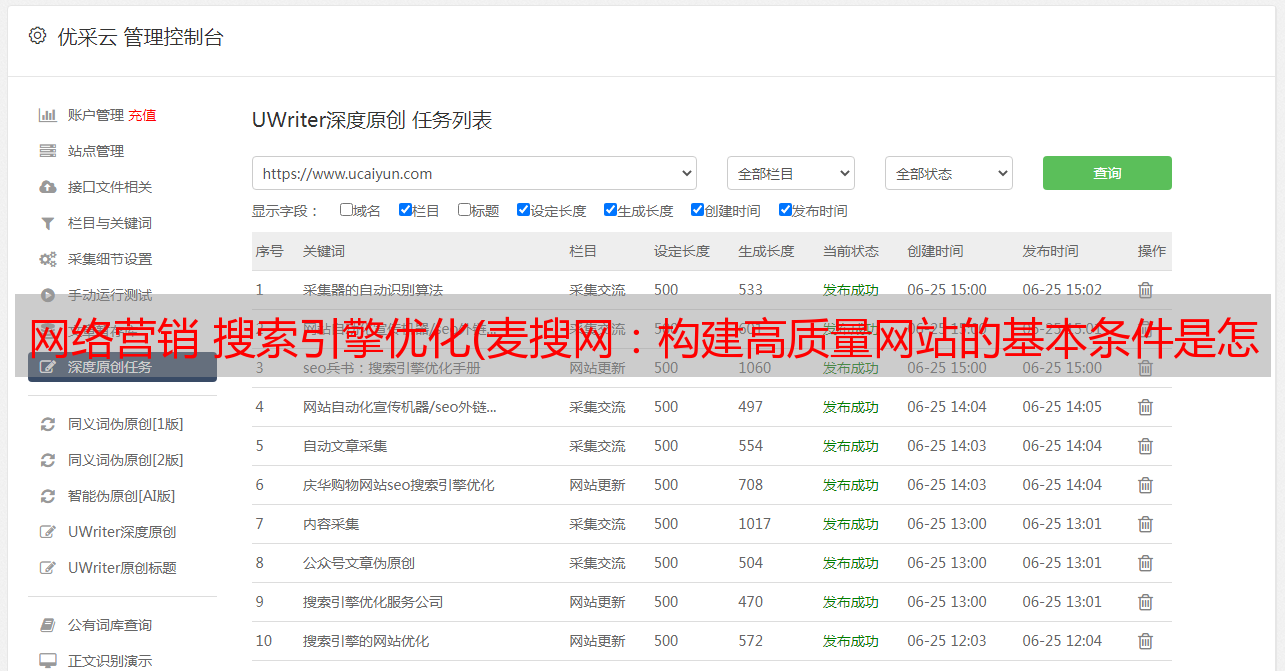 优采云 发布时间: 2021-11-17 03:16网络营销 搜索引擎优化(麦搜网:构建高质量网站的基本条件是怎样的?)