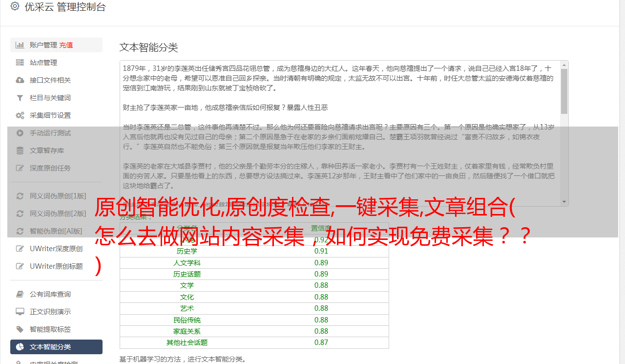 原创智能优化,原创度检查,一键采集,文章组合( 怎么去做网站内容采集,如何实现免费采集?? )