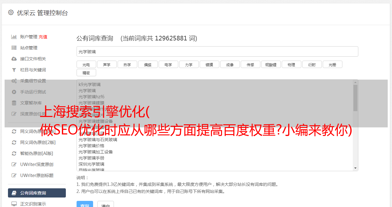 优采云 发布时间: 2021-11-17 06:25上海搜索引擎优化(
