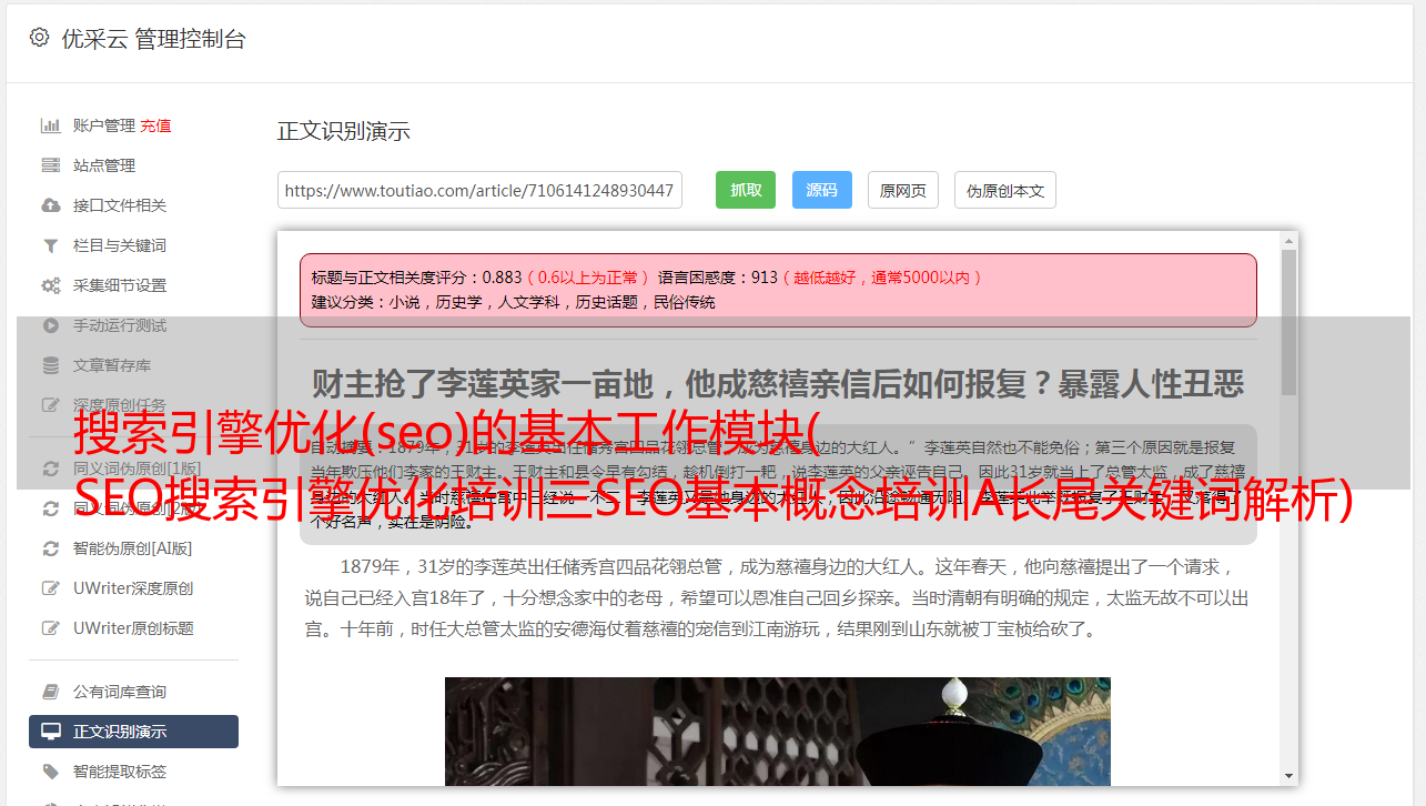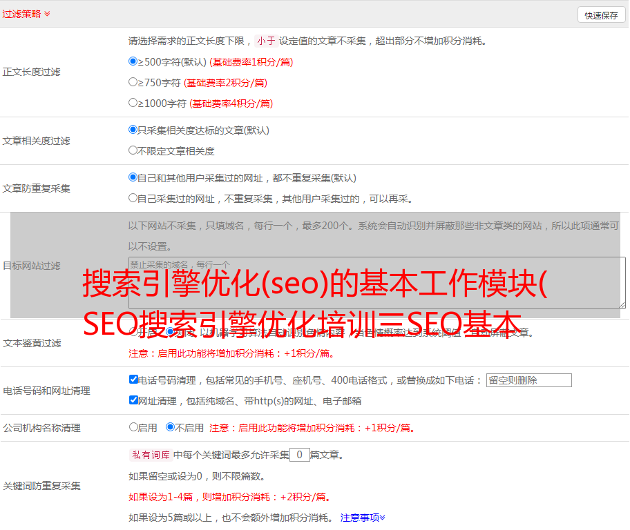 优采云 发布时间: 2021-11-17 07:17搜索引擎优化(seo)的基本工作模块(