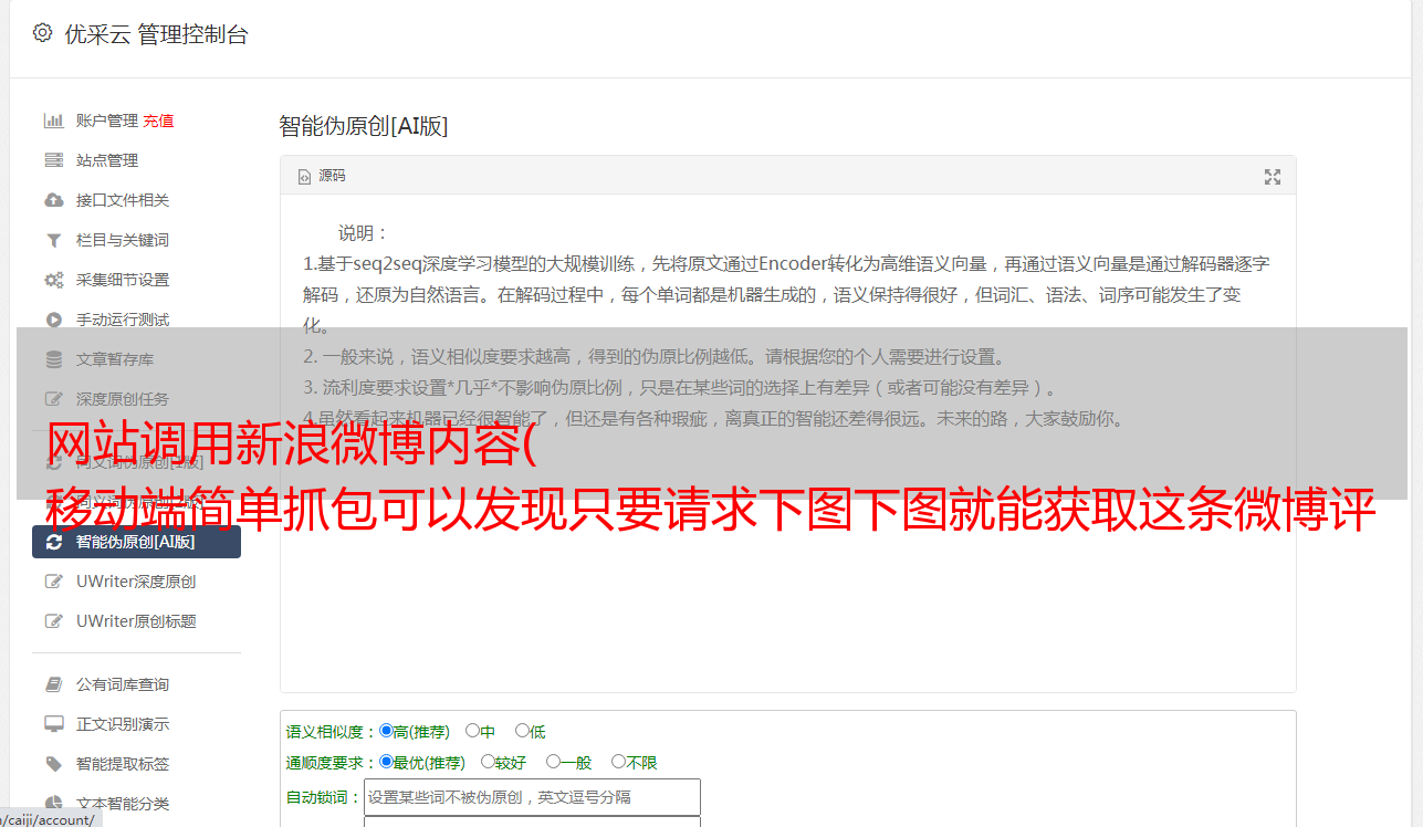 优采云 发布时间: 2021-11-17 09:00网站调用新浪微博内容(