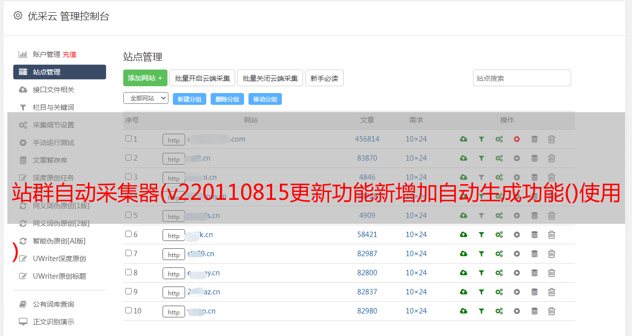 优采云 发布时间: 2021-11-17 10:18站群自动采集器(v220110815更新功能新增加自动生成功能()使用