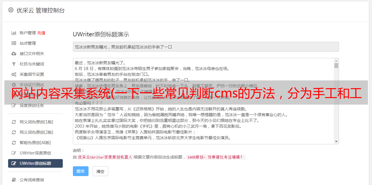 网站内容采集系统(一下一些常见判断cms的方法,分为手工和工具!)