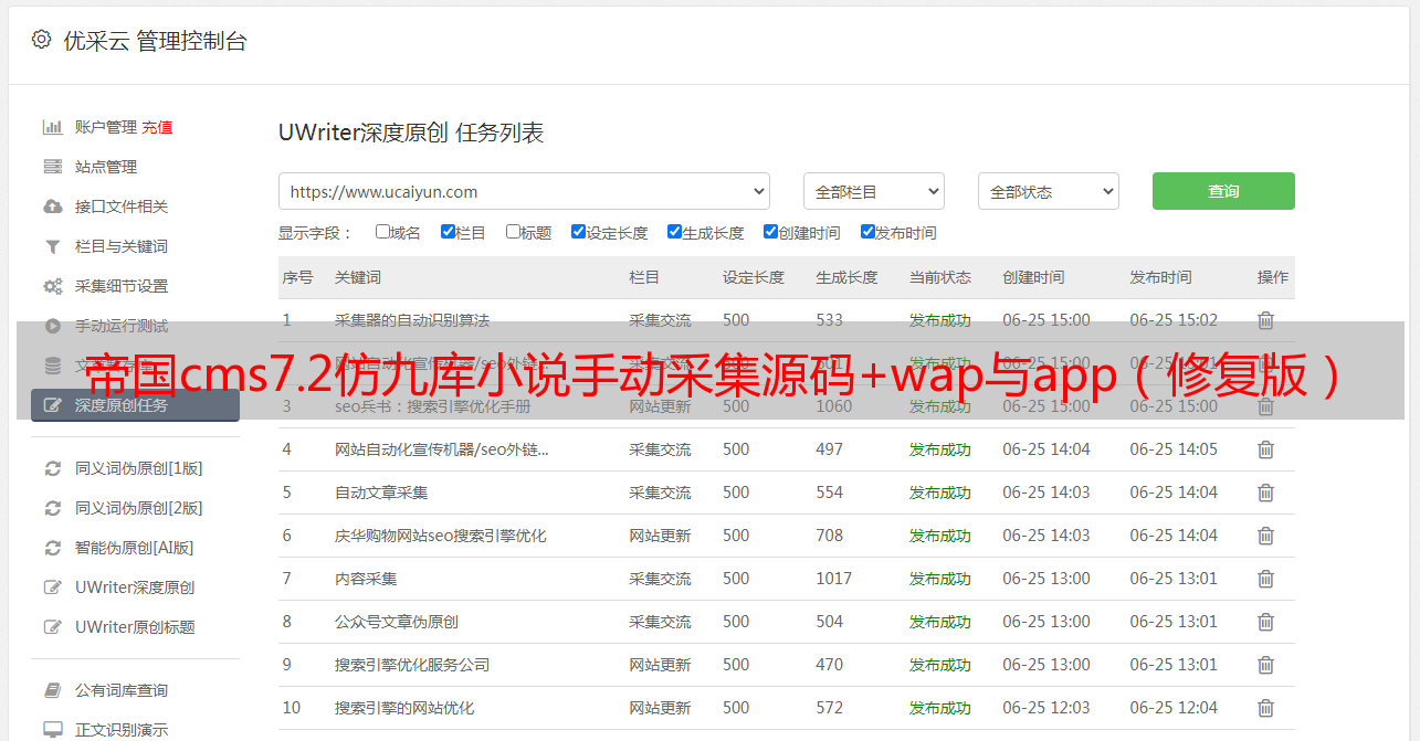 9.优采云采集,自动采集其他站,伪原创,也可以做盗版小说站