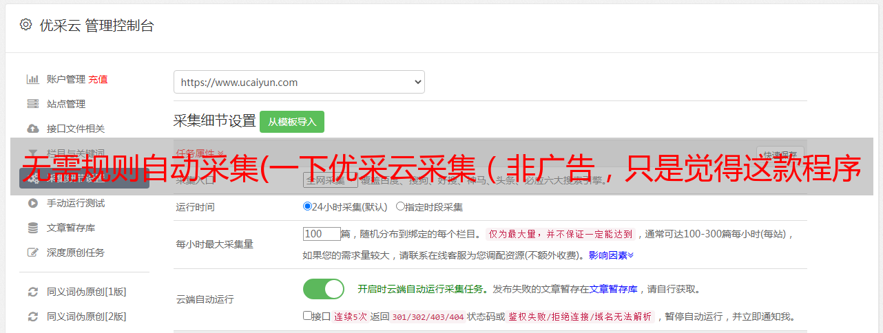 无需规则自动采集(一下优采云采集(非广告,只是觉得这款程序好))