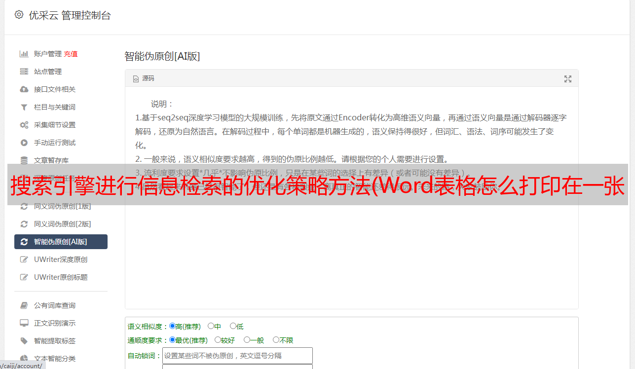 优采云 发布时间: 2021-11-17 15:22搜索引擎进行信息检索的优化策略方法(Word表格怎么打印在一张纸上的搜索中?