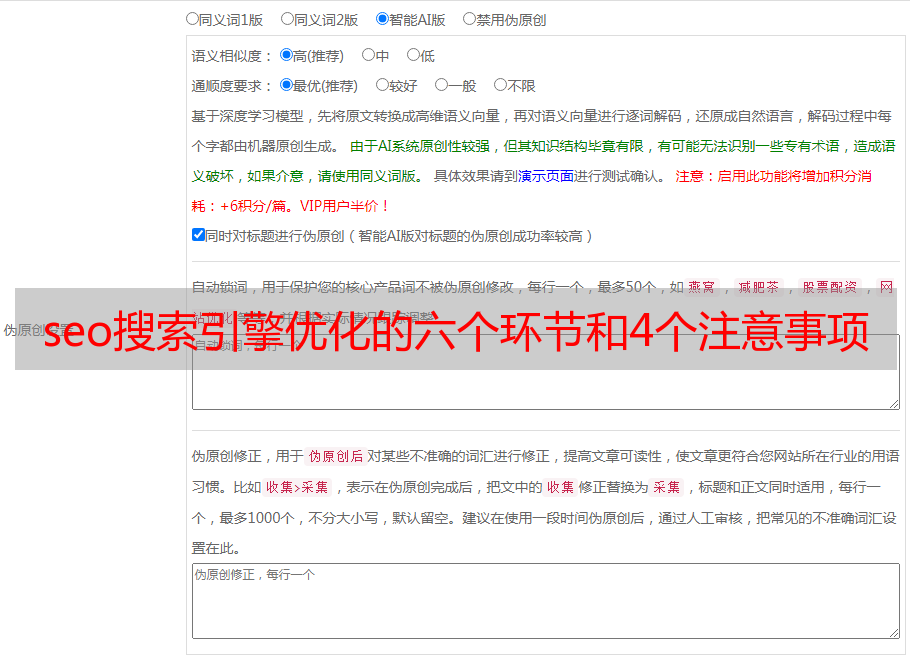 优采云 发布时间: 2021-03-29 05:13seo搜索引擎优化的六个环节和4个注意事项