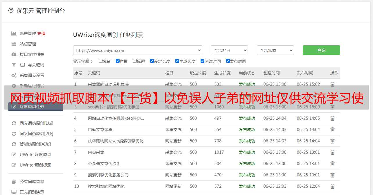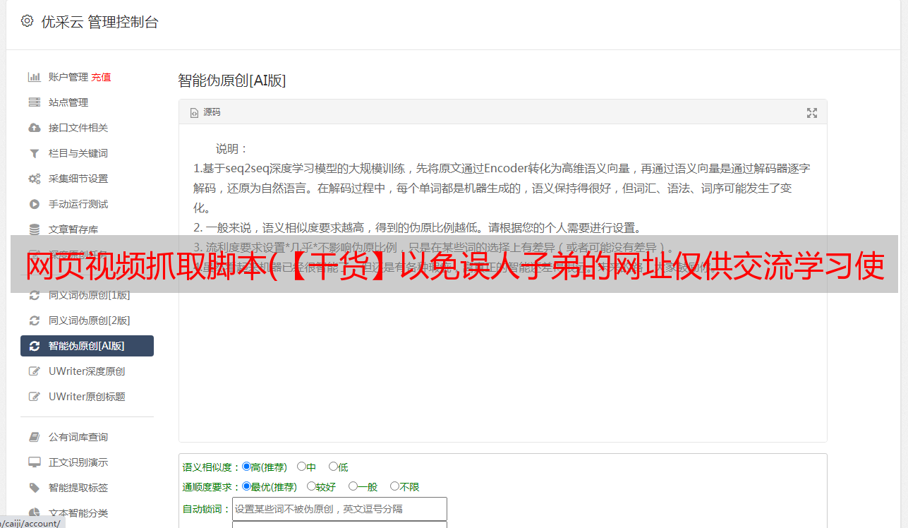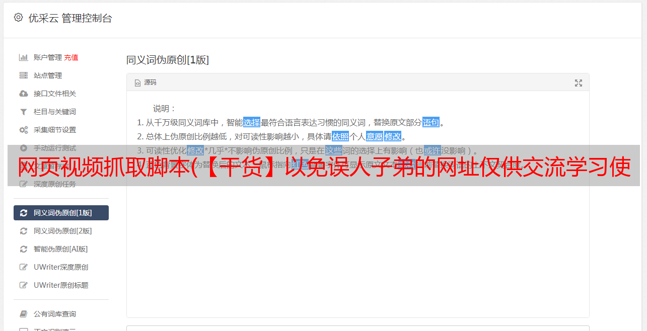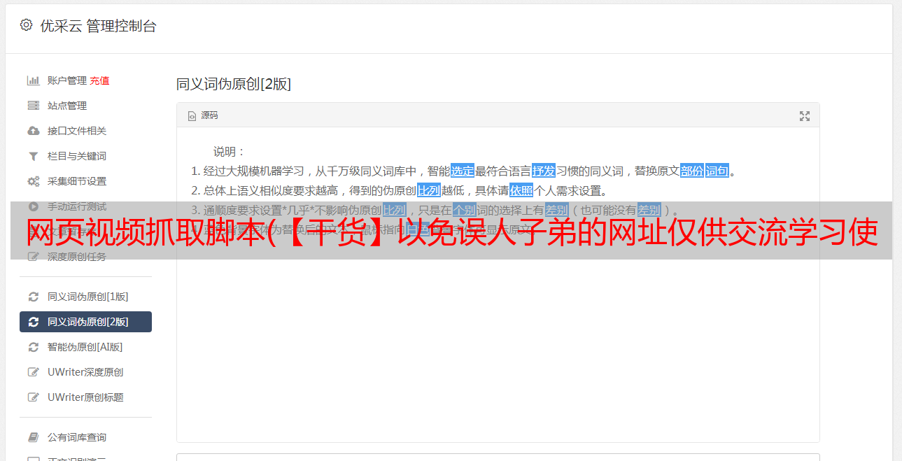 优采云 发布时间: 2021-11-17 19:15网页视频抓取脚本(【干货】以免误人子弟的网址仅供交流学习使用,请联系删除)