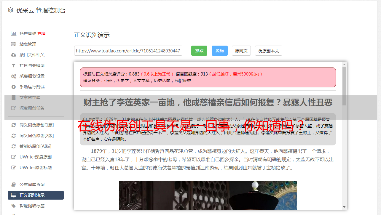 此操作还需要软件,但是处理方法与市场上的在线伪原创工具不同。让我们看一下在线伪原创工具处理的效果以及我们处理的内容