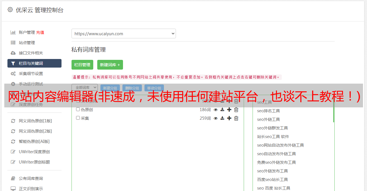 优采云 发布时间: 2021-11-18 02:16网站内容编辑器(非速成,未使用任何建站平台,也谈不上教程!)