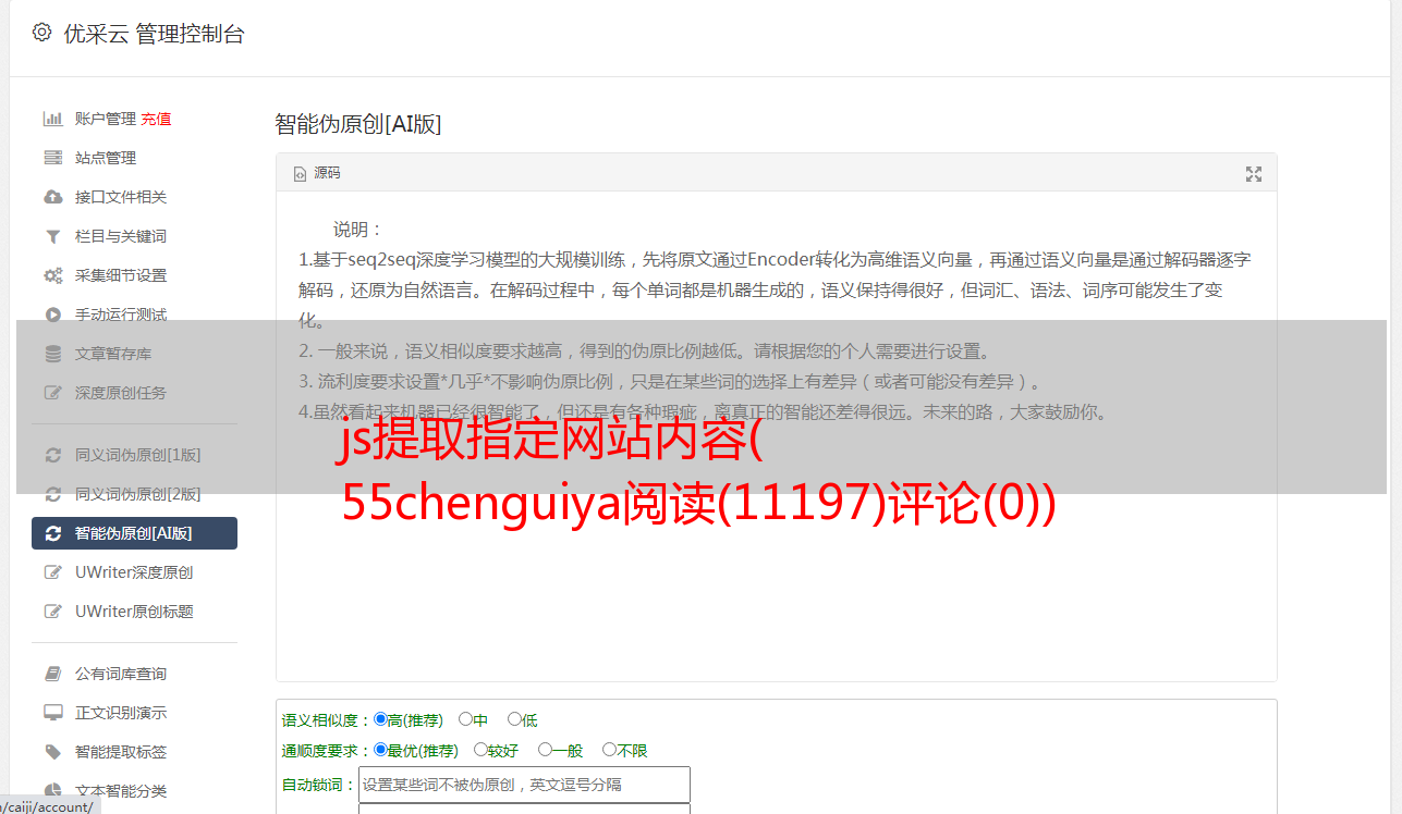 优采云 发布时间: 2021-11-18 03:10js提取指定网站内容(