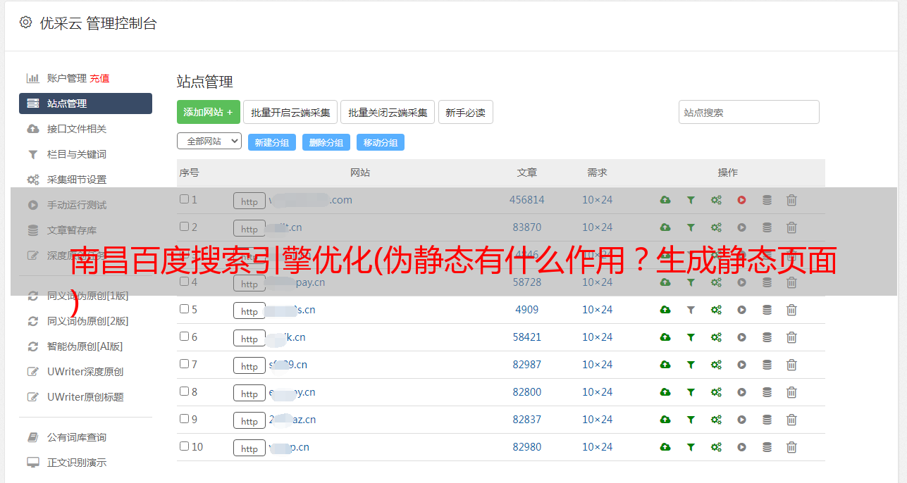 南昌seo优化每次在网站后台修改网页内容都需要重新生成静态页面,更新后的内容无法实时显示。随着时间的推移,网站的内容太多了,占用的空间量和每次产生的静态页面消耗的服务器资源也不容小觑。根据南昌优化集团专线精准营销公司,我们了解静态页面的优缺点。真正的静态通常是为了更好的缓解服务器压力,增强搜索引擎的友好度。因此,Web 内容生成为静态页面。