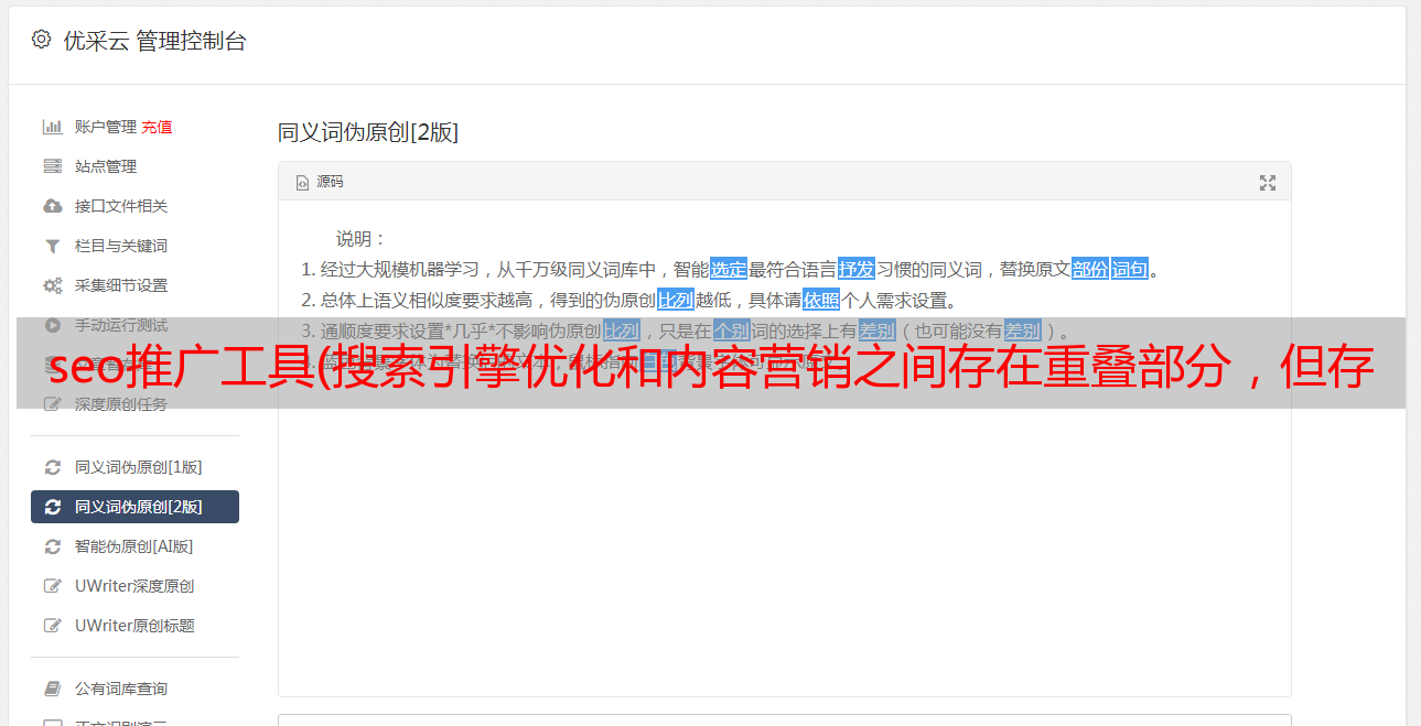 优采云 发布时间: 2021-11-18 05:09seo推广工具(搜索引擎优化和内容营销之间存在重叠部分,但存在差异)