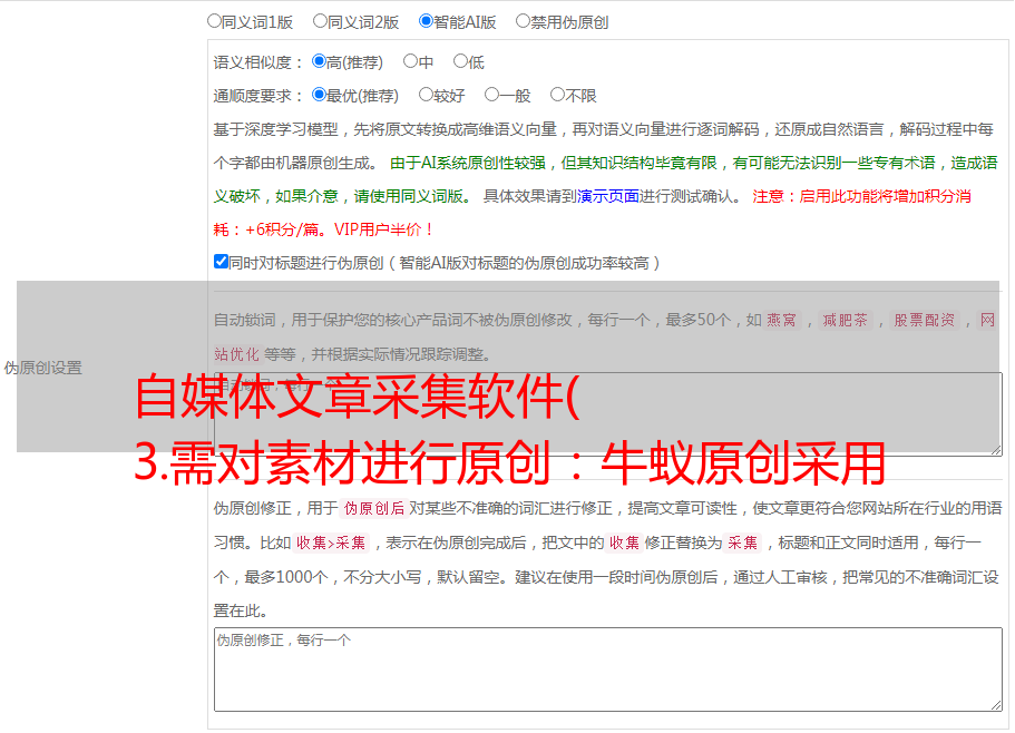 自媒体文章采集软件( 3.需对素材进行原创:牛蚁原创采用深度神经网络算法重构文章)