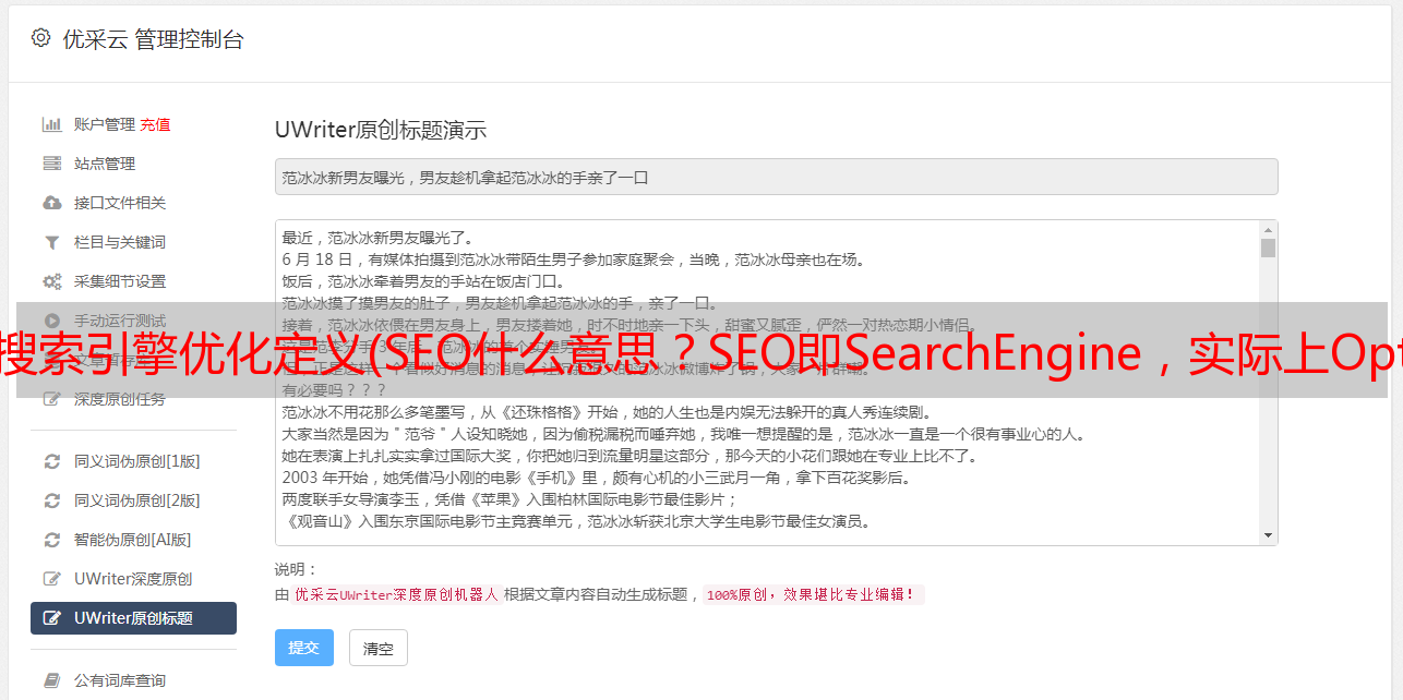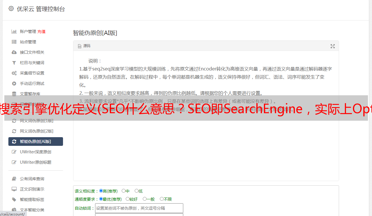 优采云 发布时间: 2021-11-18 08:06搜索引擎优化定义(SEO什么意思?SEO即SearchEngine,实际上Optimization)