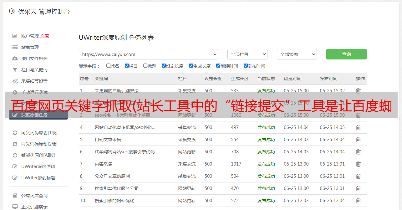优采云 发布时间: 2021-11-18 09:18百度网页关键字抓取(站长工具中的“链接提交”工具是让百度蜘蛛快速抓取的有效工具)