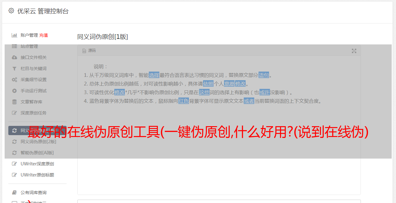 优采云 发布时间: 2021-11-18 10:14最好的在线伪原创工具(一键伪原创,什么好用?(说到在线伪)