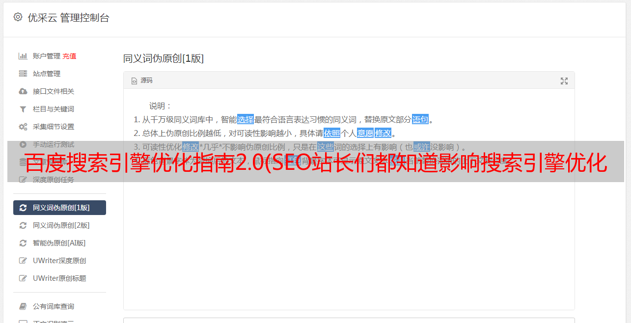 优采云 发布时间: 2021-11-18 11:14百度搜索引擎优化指南2.0(SEO站长们都知道影响搜索引擎优化的因素有哪些?)