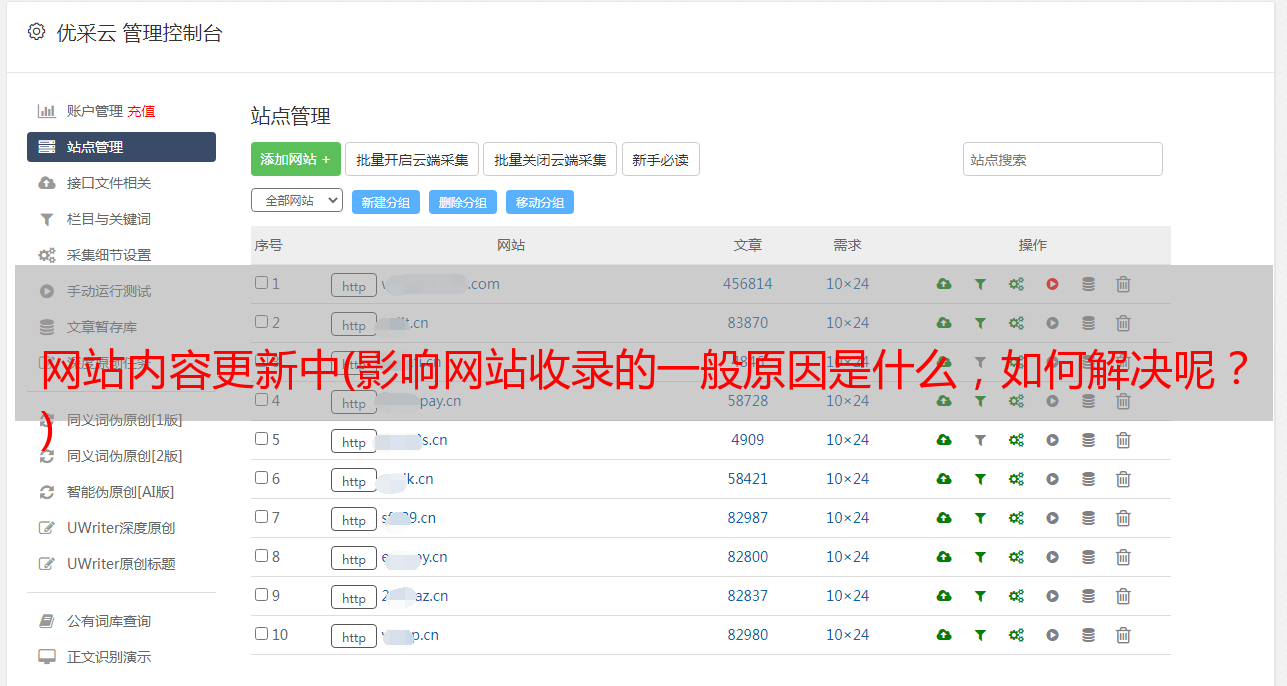 网站内容更新中(影响网站收录的一般原因是什么,如何解决呢? )