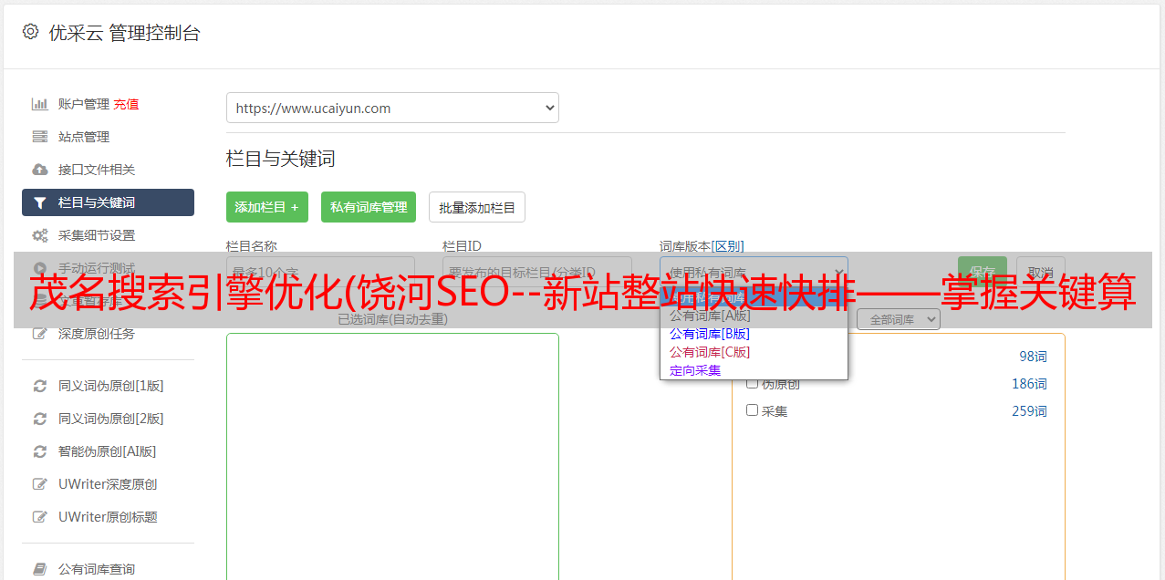 优采云 发布时间: 2021-11-18 14:04茂名搜索引擎优化(饶河SEO--新站整站快速快排——掌握关键算法)