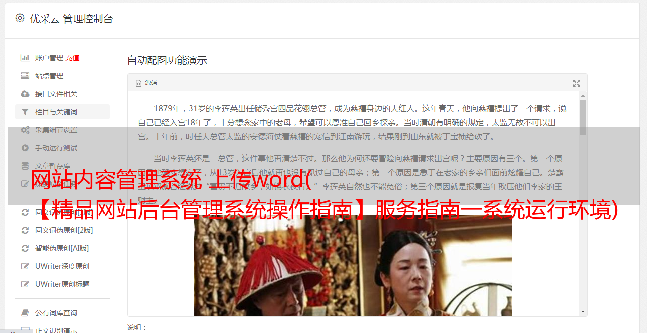 优采云 发布时间: 2021-11-18 14:18网站内容管理系统 上传word(
