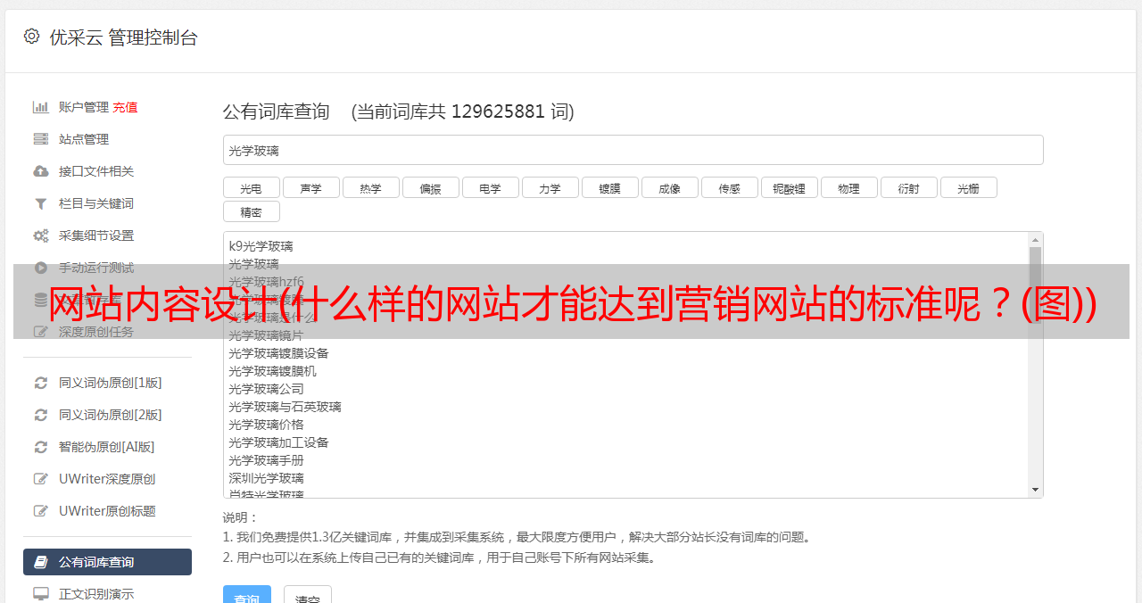 优采云 发布时间: 2021-11-18 16:09网站内容设计(什么样的网站才能达到营销网站的标准呢?(图))