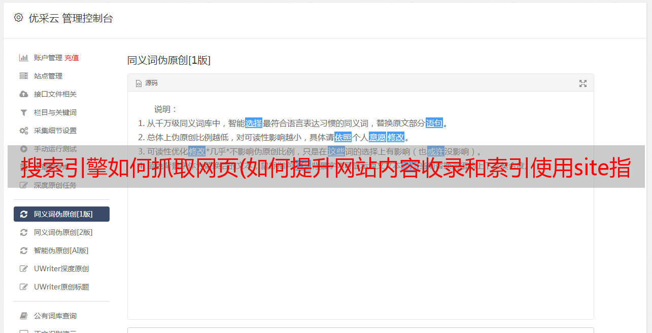 优采云 发布时间: 2021-11-18 19:18搜索引擎如何抓取网页(如何提升网站内容收录和索引使用site指令的内容?)