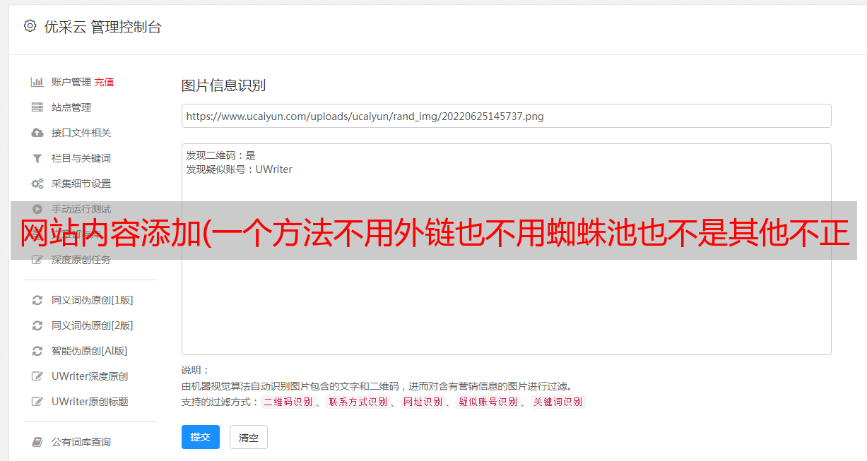 优采云 发布时间: 2021-11-19 01:05网站内容添加(一个方法不用外链也不用蜘蛛池也不是其他不正规)