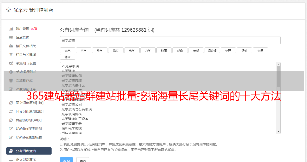 365建站器站群建站批量挖掘海量长尾关键词的十大方法