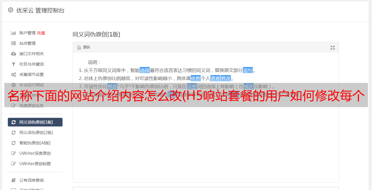 优采云 发布时间: 2021-11-19 06:14名称下面的网站介绍内容怎么改(H5响站套餐的用户如何修改每个页面的TKD参数?)
