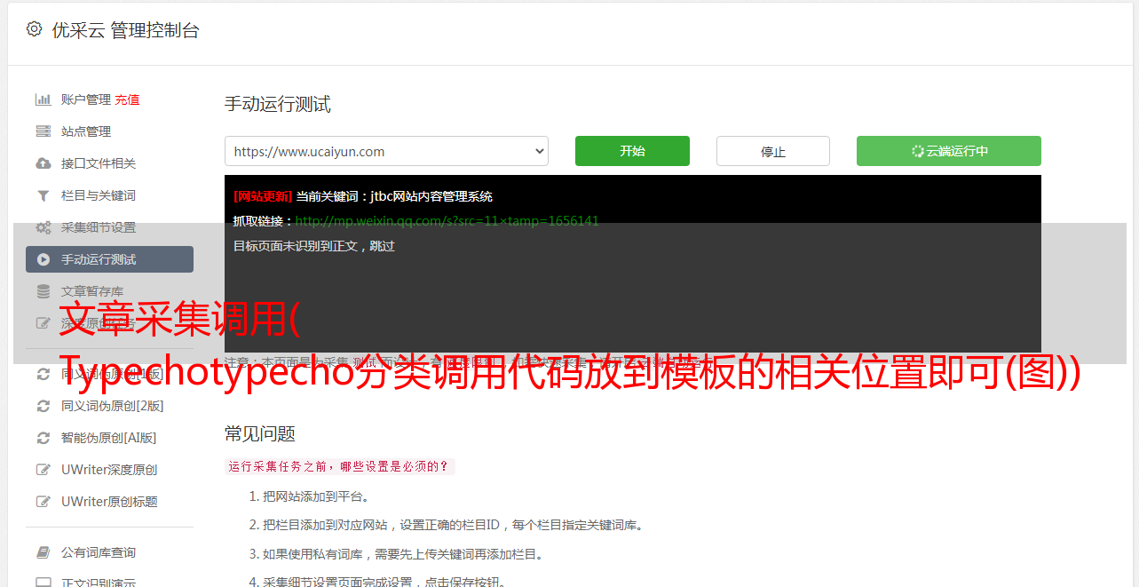 优采云 发布时间: 2021-11-19 09:14文章采集调用(