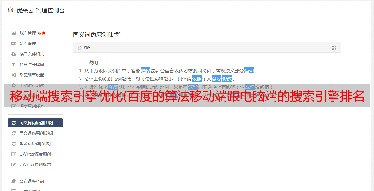 优采云 发布时间: 2021-11-19 12:22移动端搜索引擎优化(百度的算法移动端跟电脑端的搜索引擎排名算法是否是的)