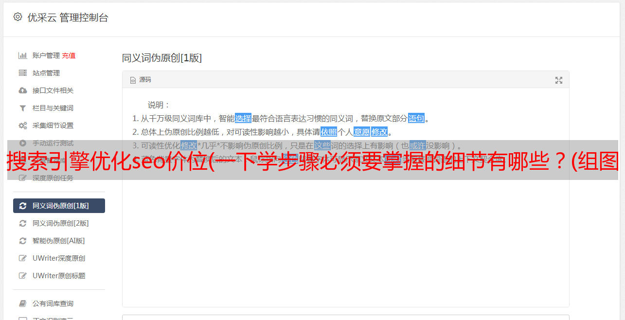 优采云 发布时间: 2021-11-19 13:01搜索引擎优化seo价位(一下学步骤必须要掌握的细节有哪些?(组图))