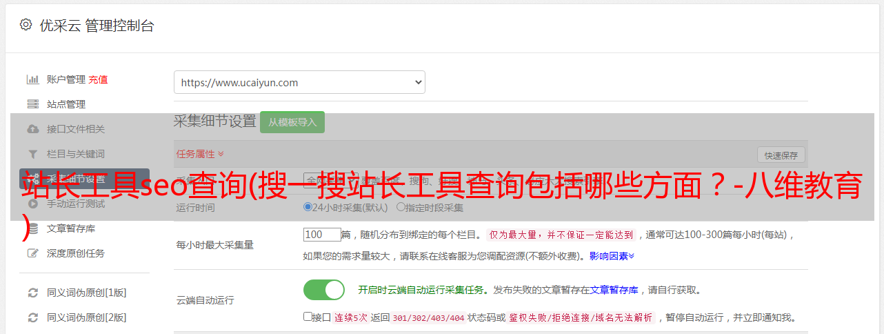 优采云 发布时间: 2021-11-19 14:04站长工具seo查询(搜一搜站长工具查询包括哪些方面?-八维教育