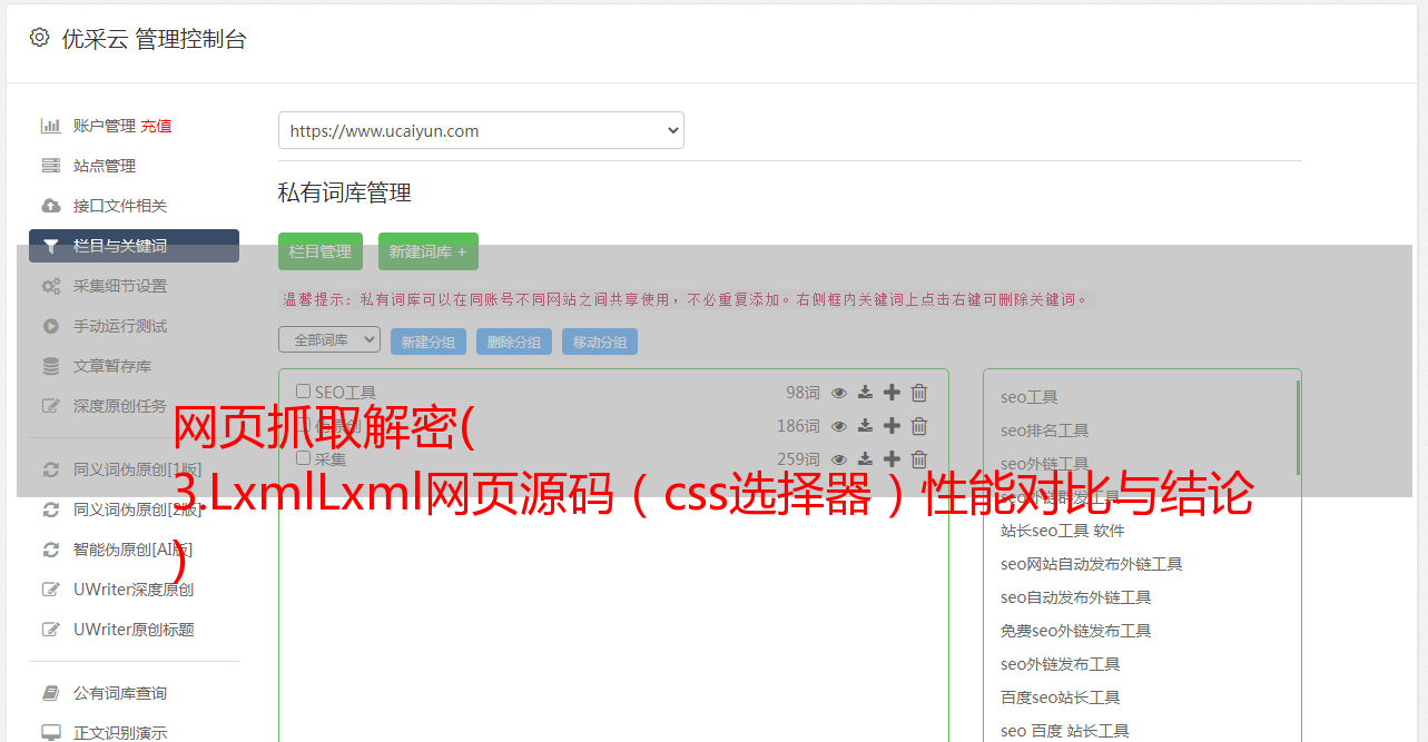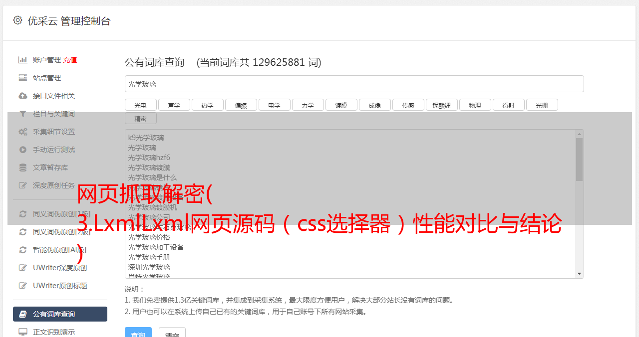 网页抓取解密( 3.LxmlLxml网页源码(css选择器)性能对比与结论 )