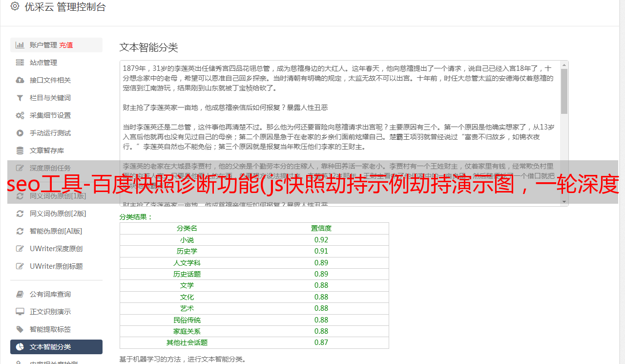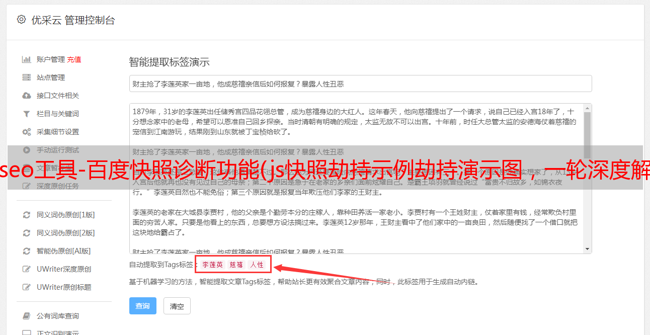 优采云 发布时间: 2021-11-19 17:15seo工具-百度快照诊断功能(js快照劫持示例劫持演示图,一轮深度解析!
