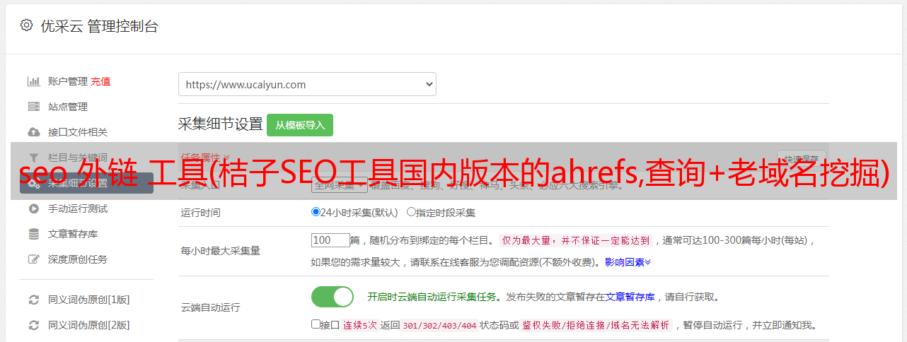 优采云 发布时间: 2021-11-19 20:03seo 外链 工具(桔子SEO工具国内版本的ahrefs,查询+老域名挖掘)