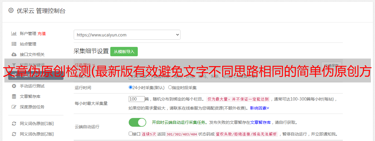 再次,软件上的小数值参数,比如原创检测标准等,建议不要修改默认的。原创检测标准是判断段落原创飘红的次数。秒内计数原创