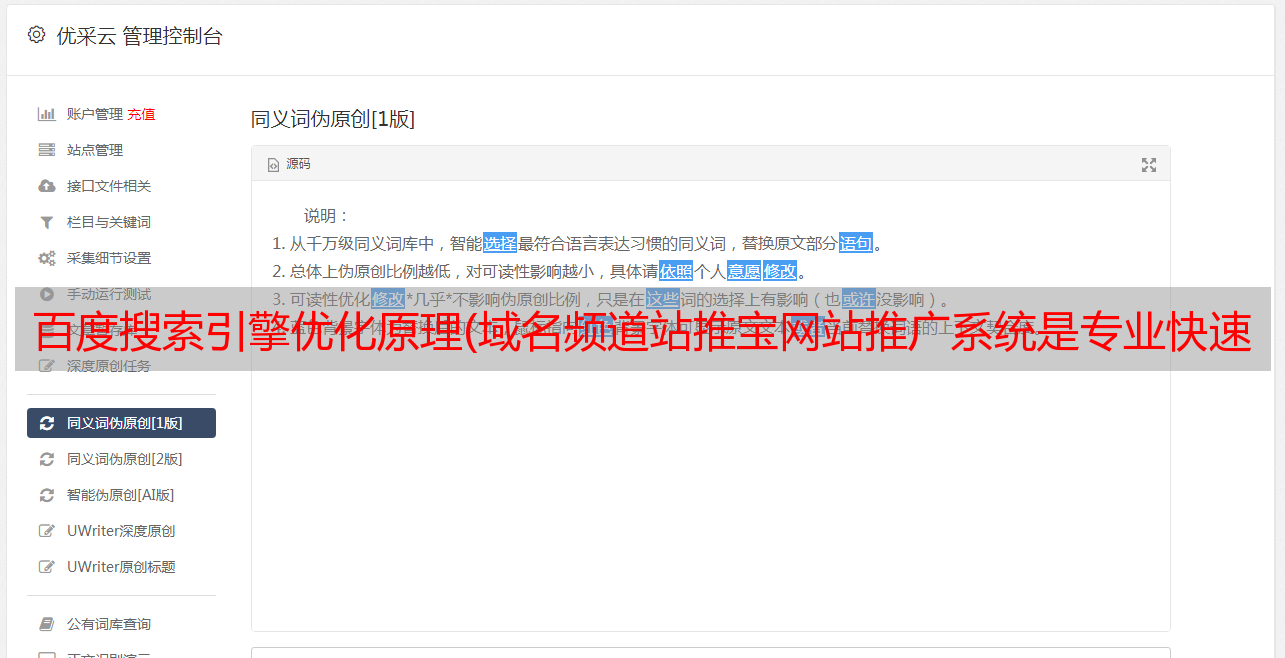 优采云 发布时间: 2021-11-20 02:02百度搜索引擎优化原理(域名频道站推宝网站推广系统是专业快速提升网站关键词)