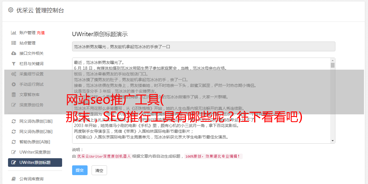 优采云 发布时间: 2021-11-20 03:20网站seo推广工具(