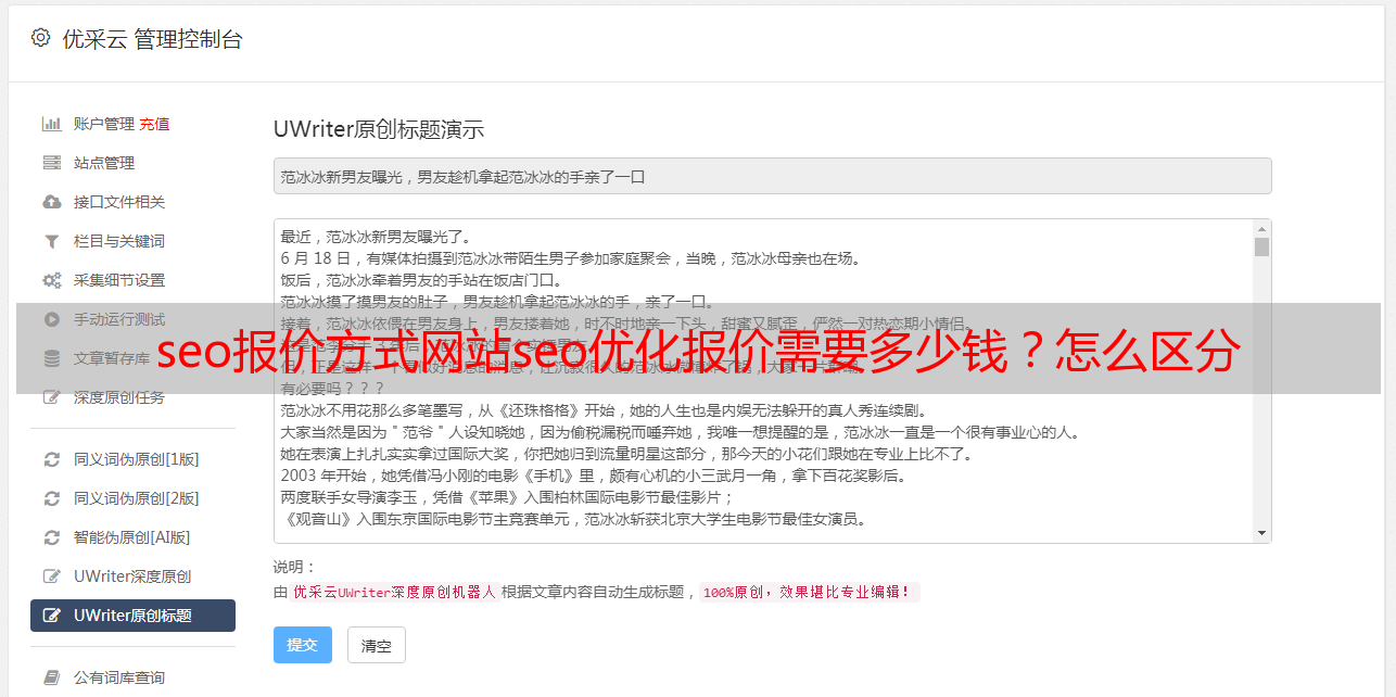 优采云 发布时间: 2021-03-30 00:17seo报价方式网站seo优化报价需要多少钱?怎么区分