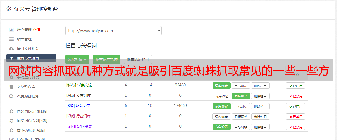 优采云 发布时间: 2021-11-20 09:05网站内容抓取(几种方式就是吸引百度蜘蛛抓取常见的一些一些方式)